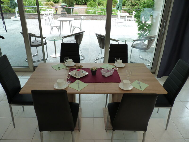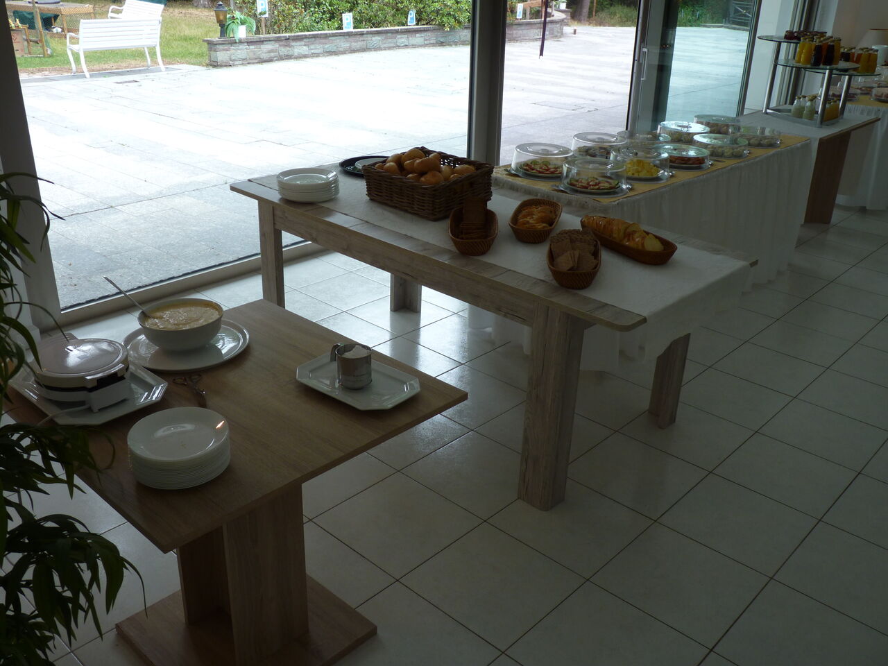 Unser mit viel Platz aufgebautes Frühstücksbuffet.
